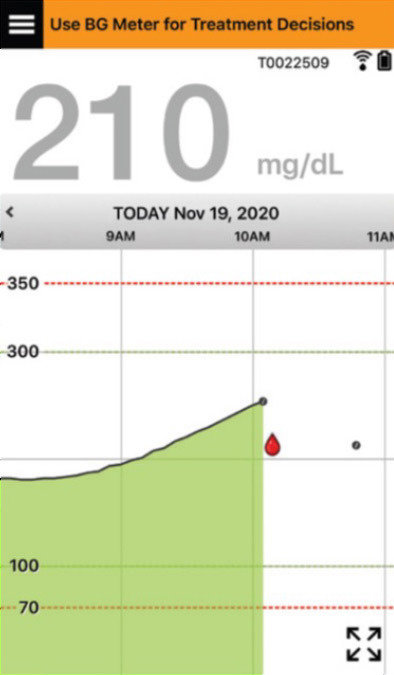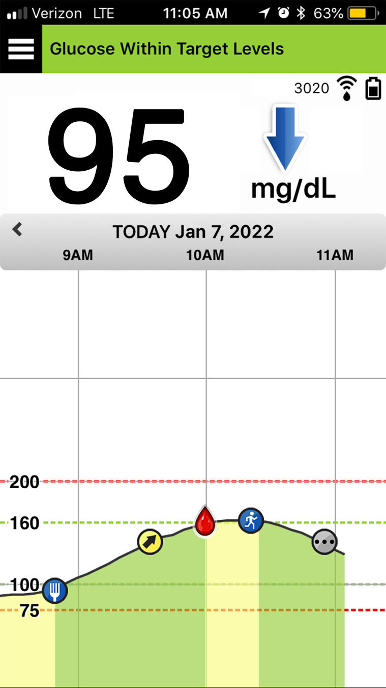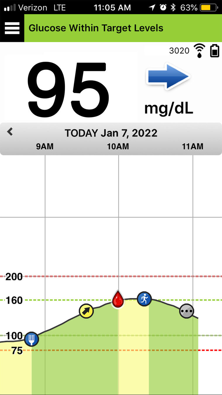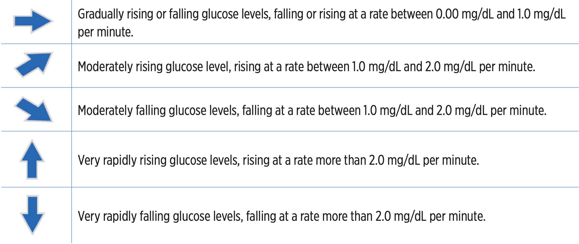 The trend arrow is an especially powerful benefit of CGM. It allows you to anticipate your future glucose level and proactively adjust your diabetes treatment decisions as needed.