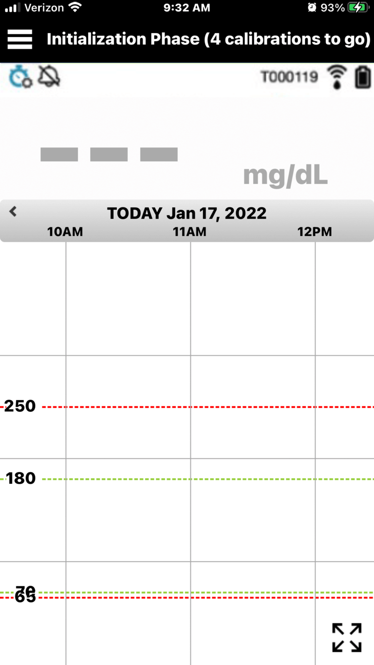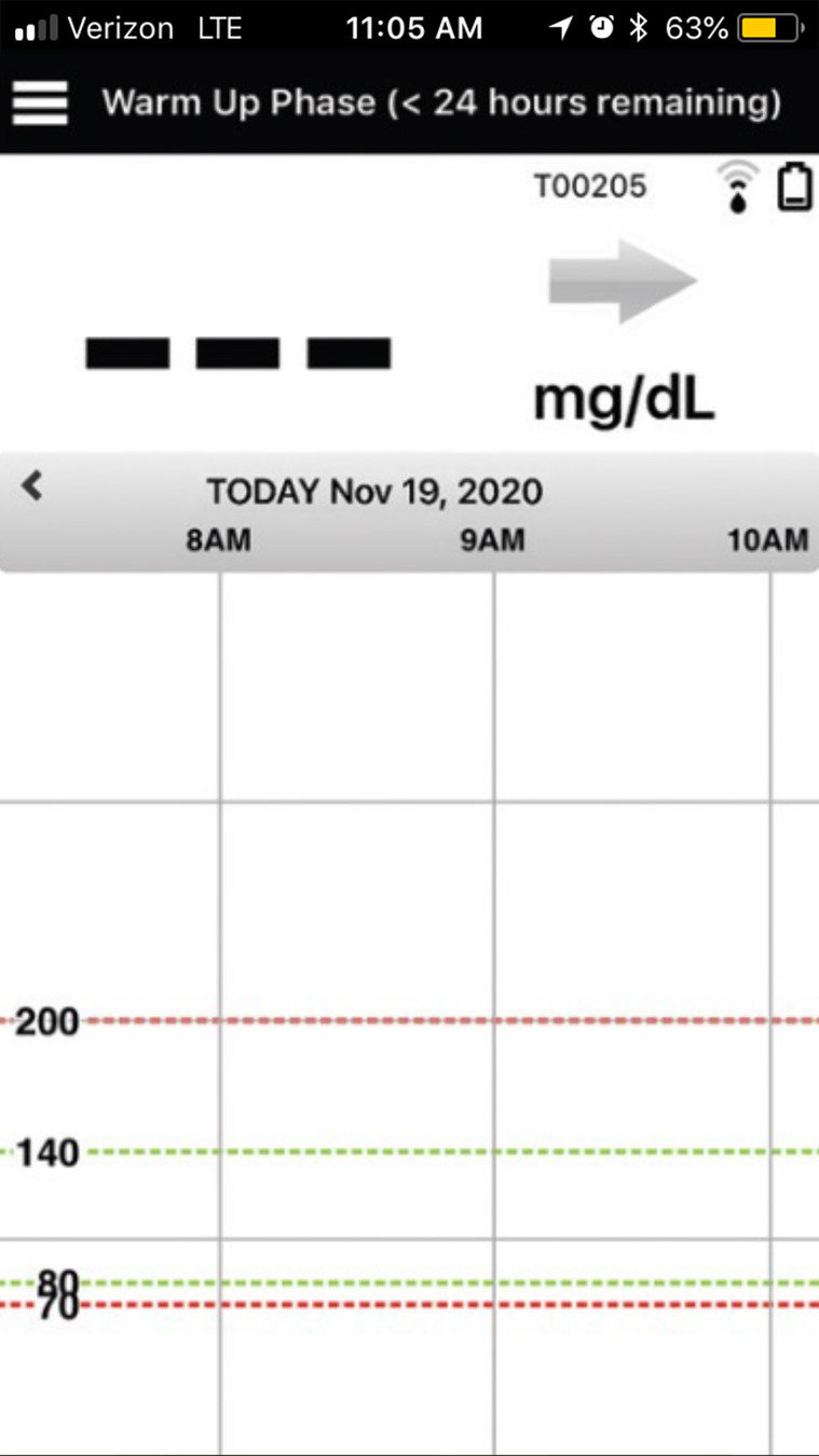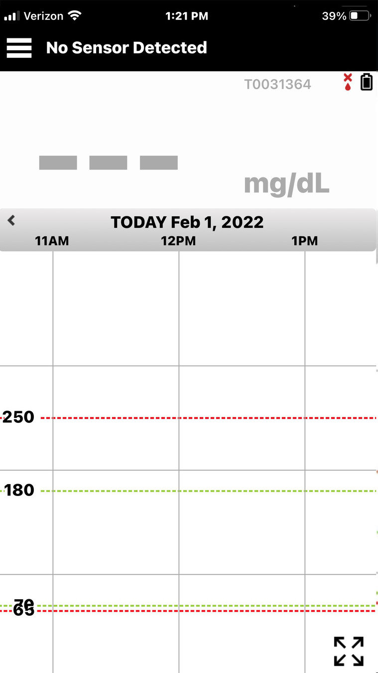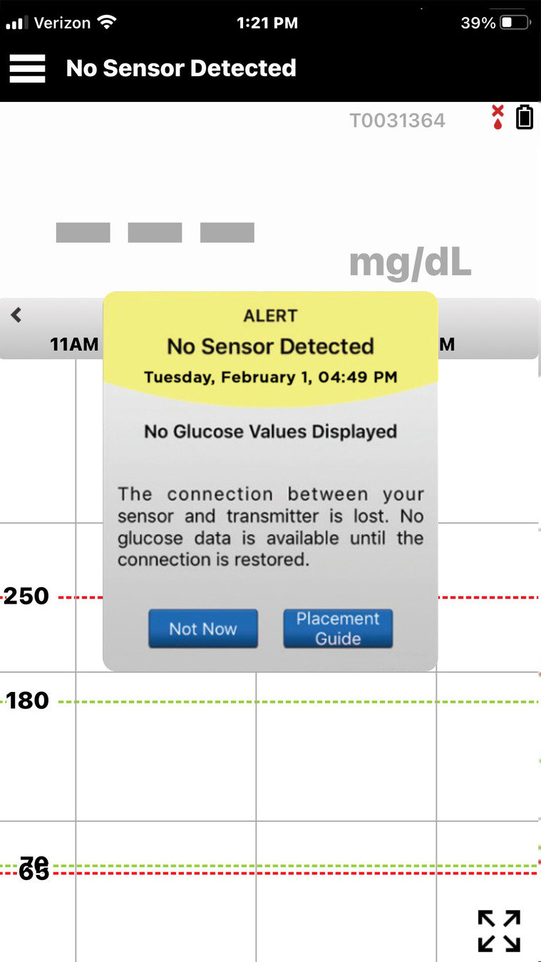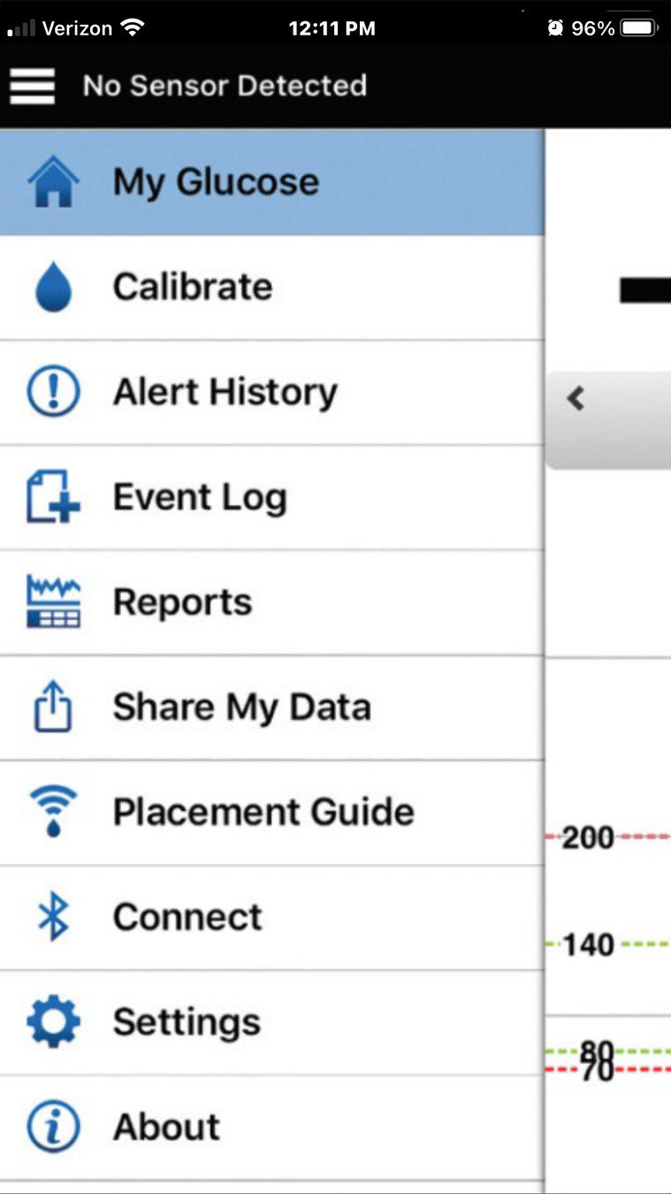 Looking at the My Glucose Home screen, you’ll notice the transmitter battery icon on the top right is black.