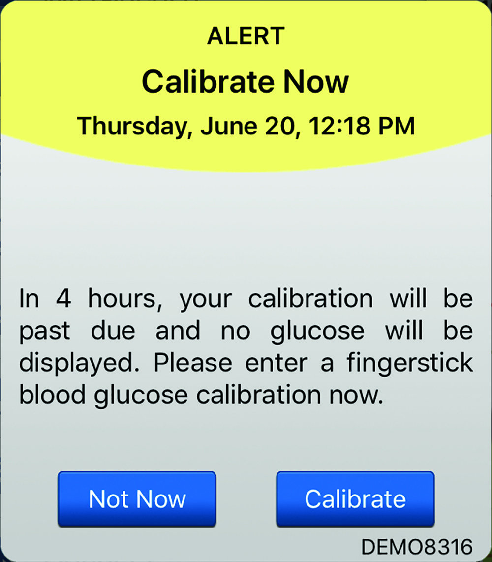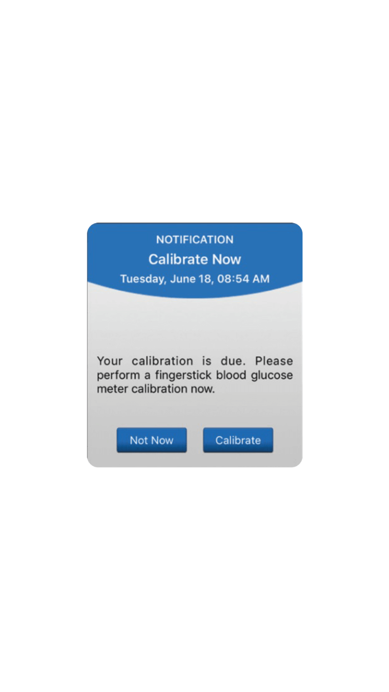 When you receive the Calibrate Now alert and respond by entering your BG fingerstick value, you will receive one of two notifications if there is an update to when your next calibration is due.