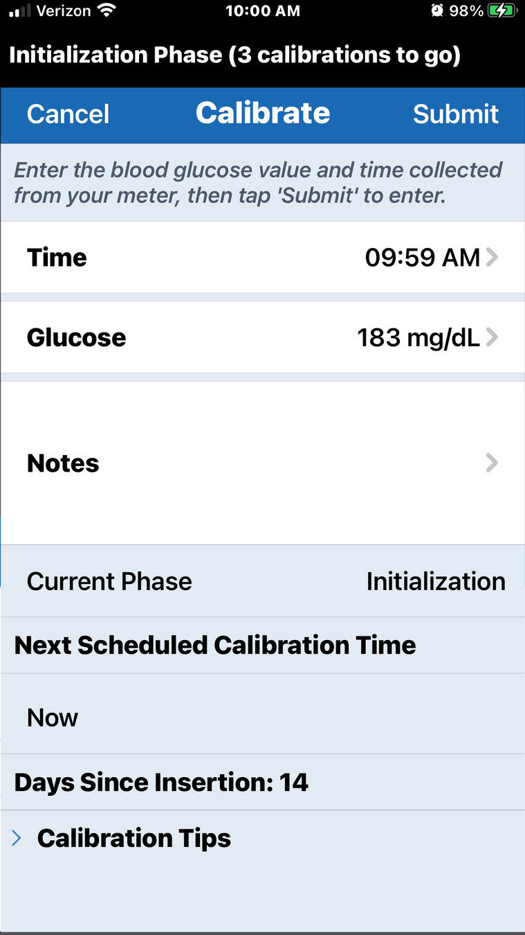If it’s more convenient in your day, you have the option to calibrate early – that is, before you get your alert that a calibration is due.