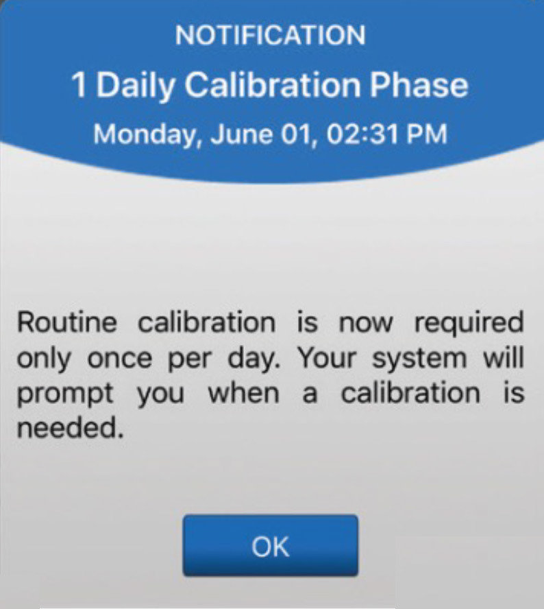 If you get the 2 Daily Calibrations Phase notification, this means 2 calibrations are required each day. And, you’ll
