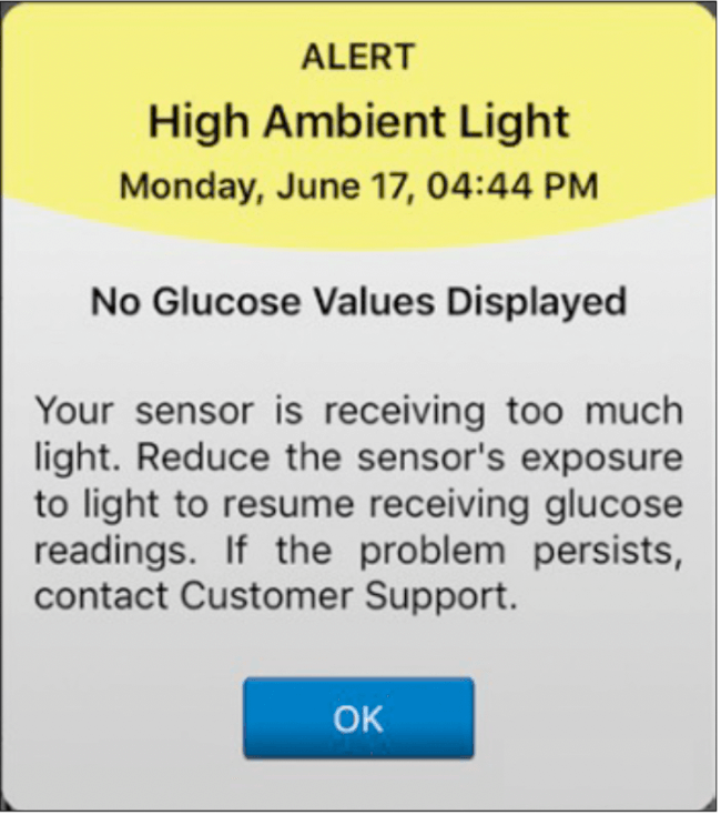 It will appear if there is too much light getting to the sensor through your skin - interfering with the sensor’s ability to do its job. This alert is not common, and is a temporary condition.