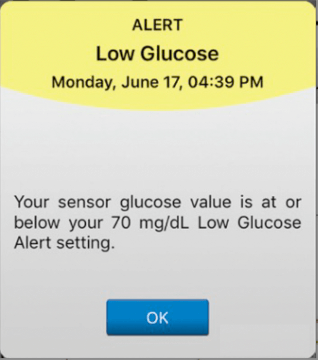 Your glucose alerts will let you know when your glucose level has passed a critical high or low glucose threshold, as determined by your health care provider.